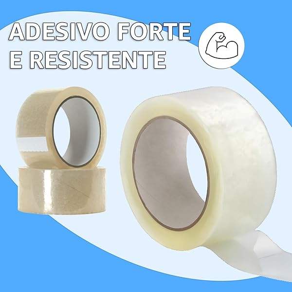 Nastro Adesivo Trasparente Resistente 5cm X 66m Rotolo per Imballaggio e Traslochi 6 Rotoli per Unità