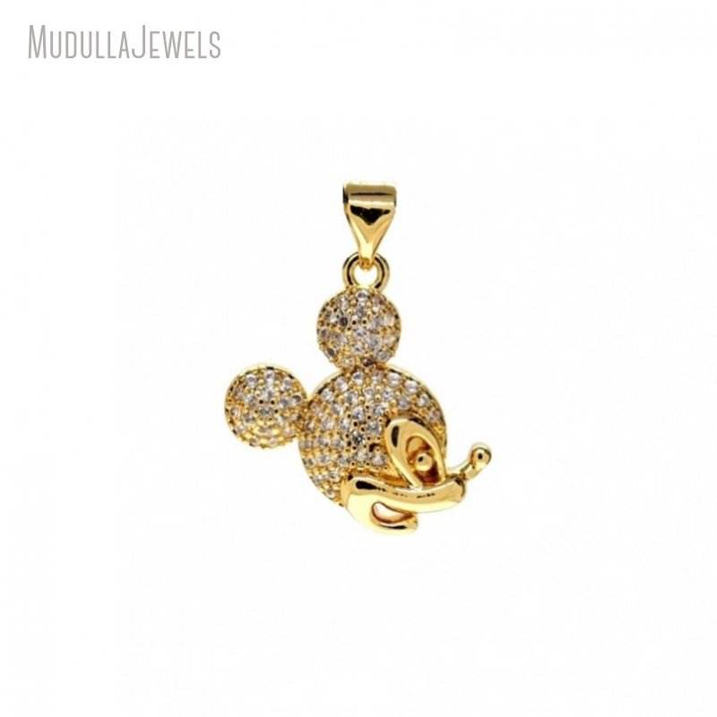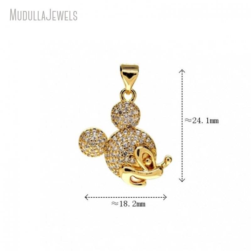 Ciondolo a forma di testa di Topolino in Zirconia Cubica Trasparente (CZ) per fai da te, Charms per Crocs, Accessori Placcati Oro, Regalo per Creazione Gioielli