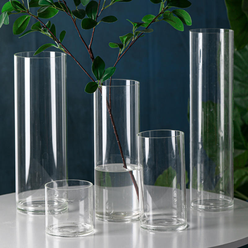 Vaso in vetro trasparente grande enorme 60cm 70cm 80 cm alto 32 "fiori graziosi vasi a cilindro di cristallo per centrotavola di nozze