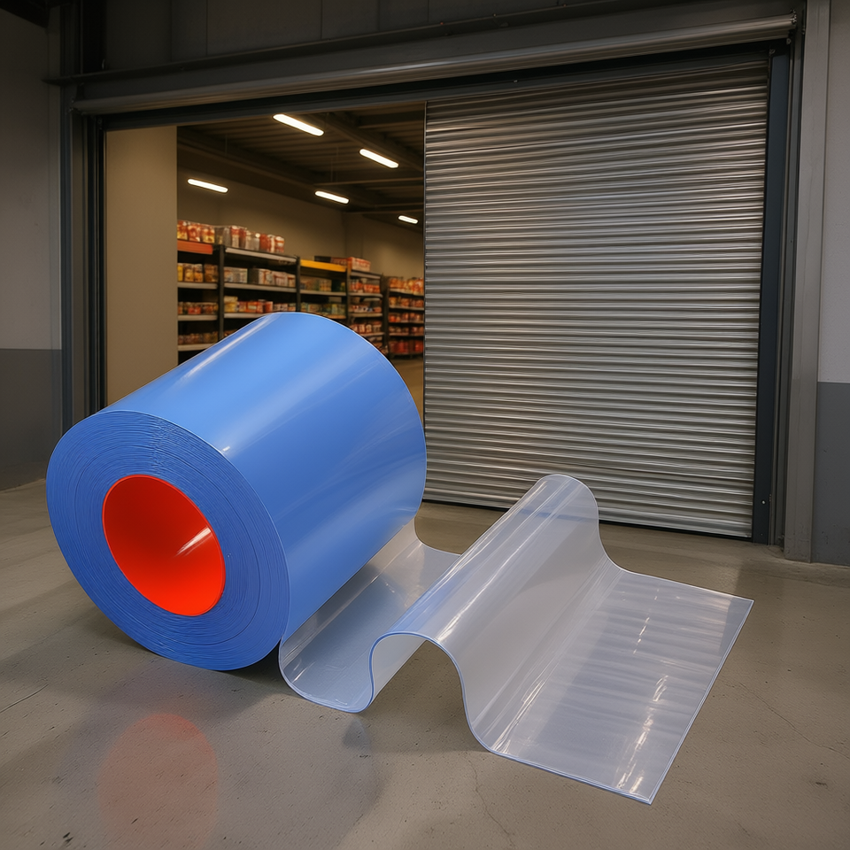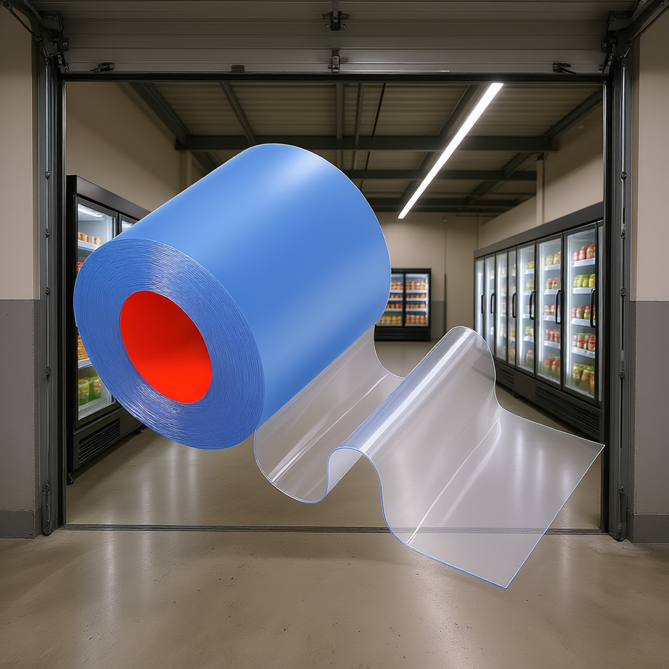 Tenda a strisce in PVC trasparente 30,8 m x 30,5 cm, rotolo di plastica per porte, per supermercati, garage, celle frigorifere, impermeabile, uso commerciale