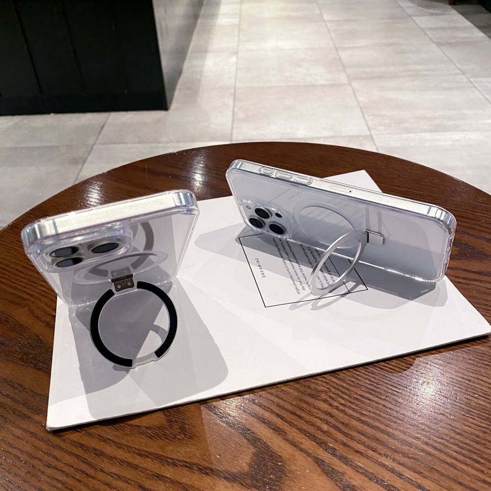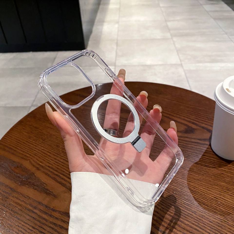Clear Phone Case for iPhone 17 16 15 14 11 12 13 Pro Max 16E Magnetic Kickstand Back Cover for Samsung S25 Edge