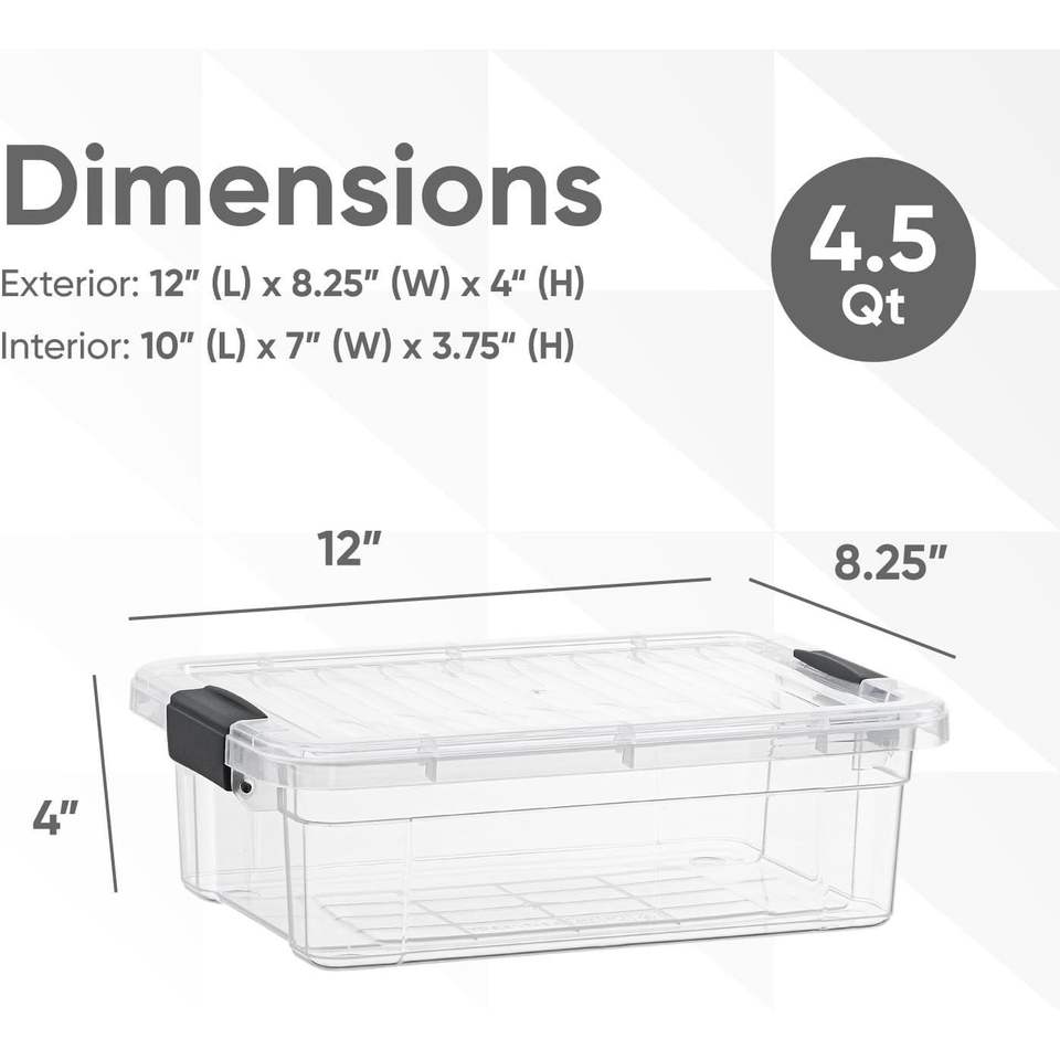 Contenitore di Stoccaggio in Plastica Trasparente da 4,5 Quarti con Coperchio, Contenitori Impilabili per Organizzazione Casa, Garage, Dormitorio, Scuola