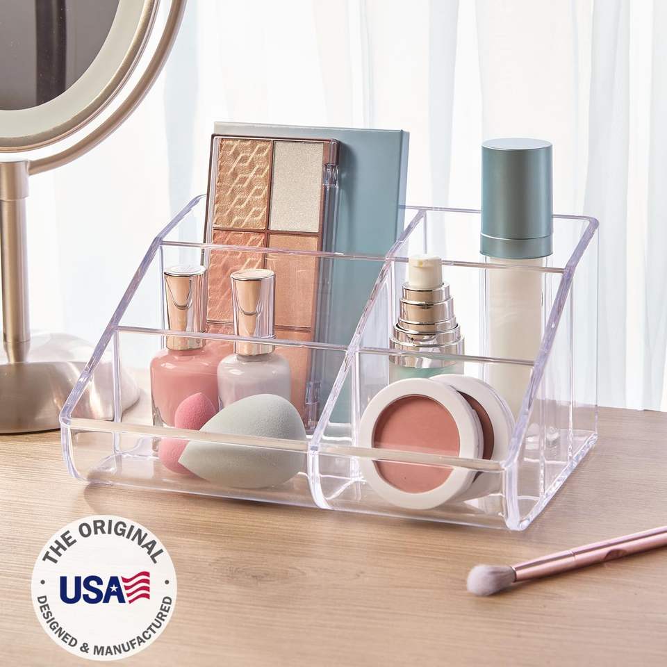 Organizer per Trucchi in Plastica Trasparente a 6 Scomparti con Design Curvo Frontale per Pennelli, Palette Ombretti e Prodotti di Bellezza