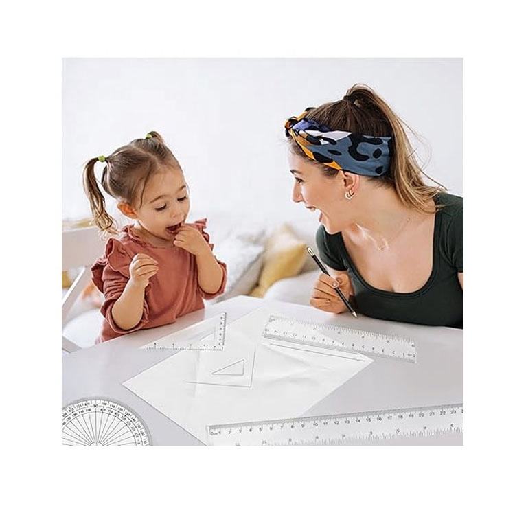 Il Set di matematica in plastica trasparente per la scuola include goniometri rettilinei righetti a geometria diritta 180 ° 45 ° 60 ° triangoli