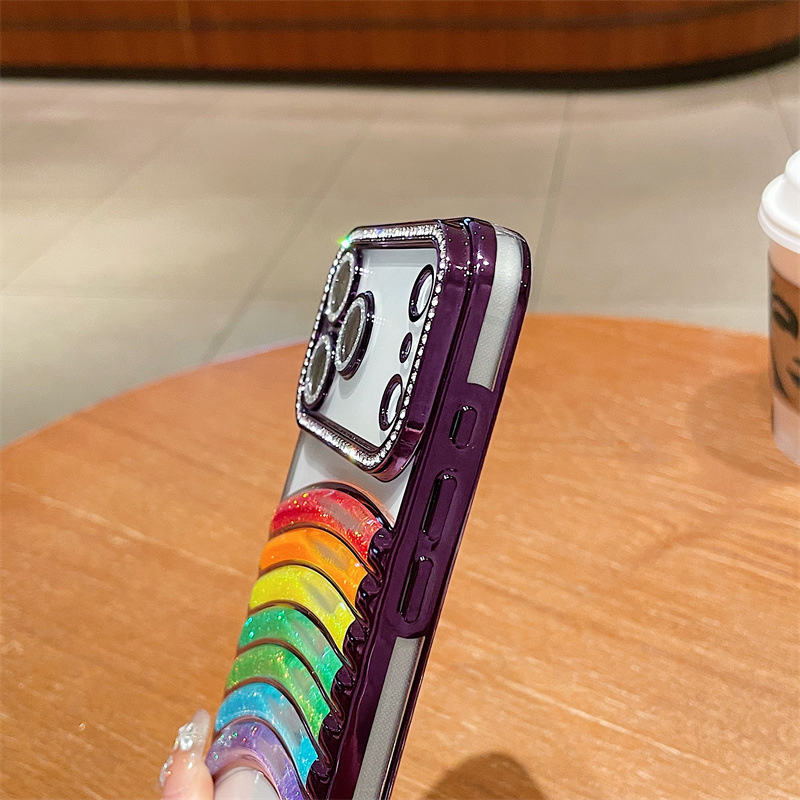 Cover per Cellulare in TPU Elettroplaccato con Effetto Sabbie Mobili Trasparente e Liquido Fluente Arcobaleno per iPhone 17 Air 16 15 14 13 12 Pro Max