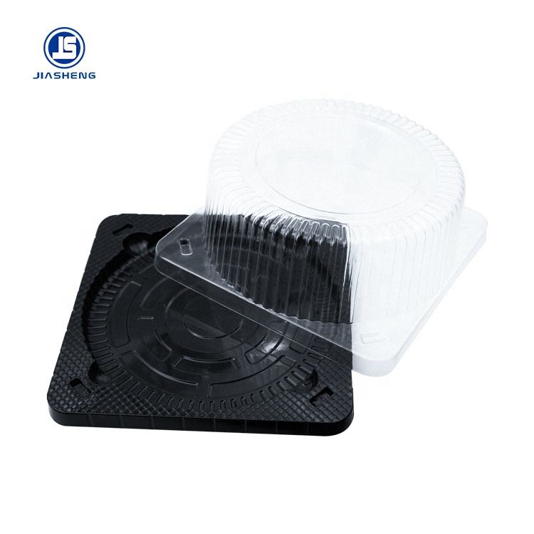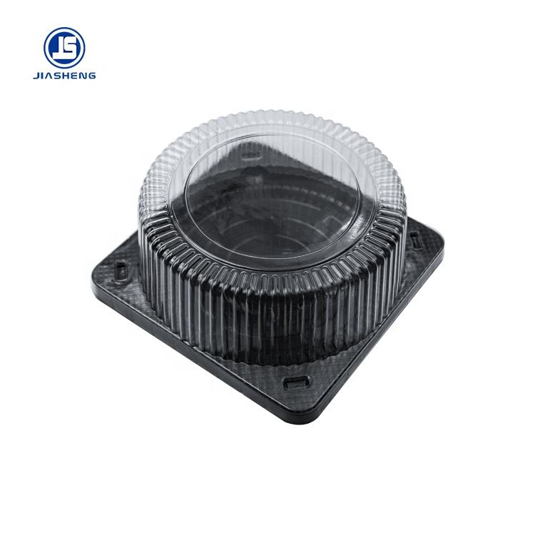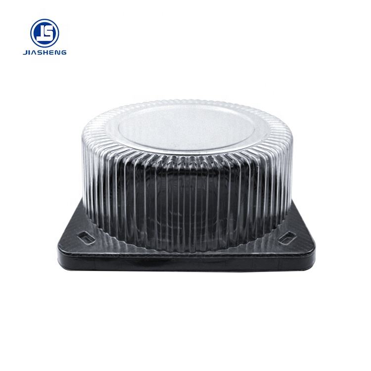 Clear Small Round Plastic Cake Packaging Box with black tray
