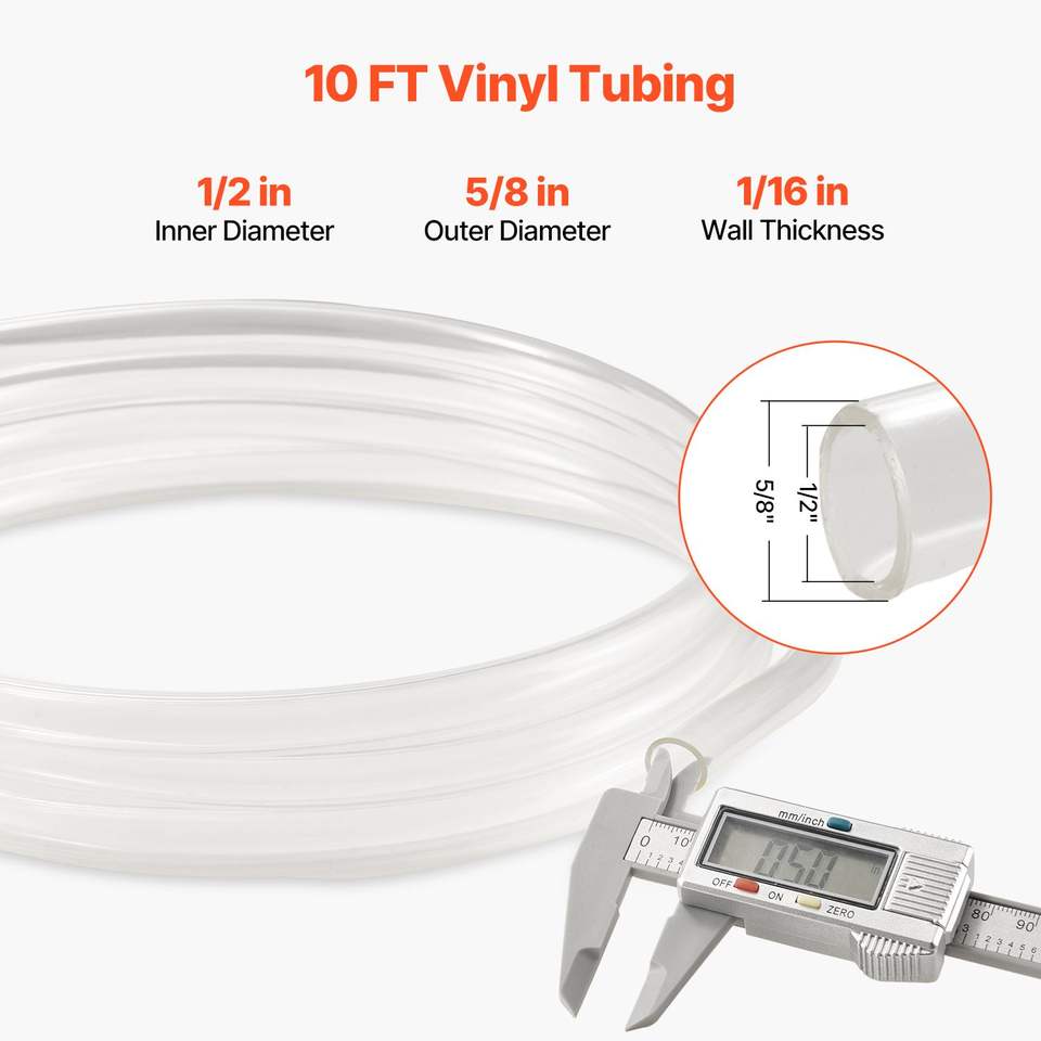 Tubo in Vinile Trasparente 1/2'' ID X 5/8'' OD 10FT, Tubo Flessibile in PVC Tagliabile, Spessore Parete 1/16'', Tubi in Gomma di Alta Qualità