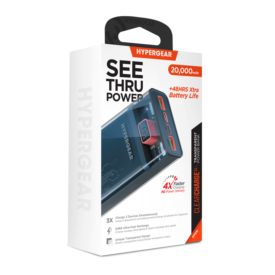 ClearCharge XL 20000mAh Power Bank Trasparente PD ad Alta Capacità, Caricabatterie da Viaggio e Stazione di Ricarica Portatile