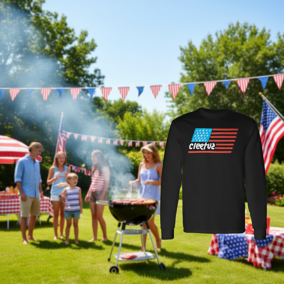 T-shirt a maniche lunghe Cleetus con design della bandiera americana, abbigliamento da uomo nero