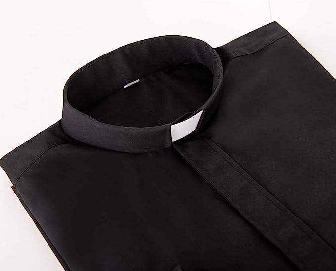 Camicia a Maniche Corte con Colletto a Linguetta per Sacerdoti, in Misto Cotone/Poliestere, Costume da Ministro con Chiusura a Bottone Bianco Rimovibile