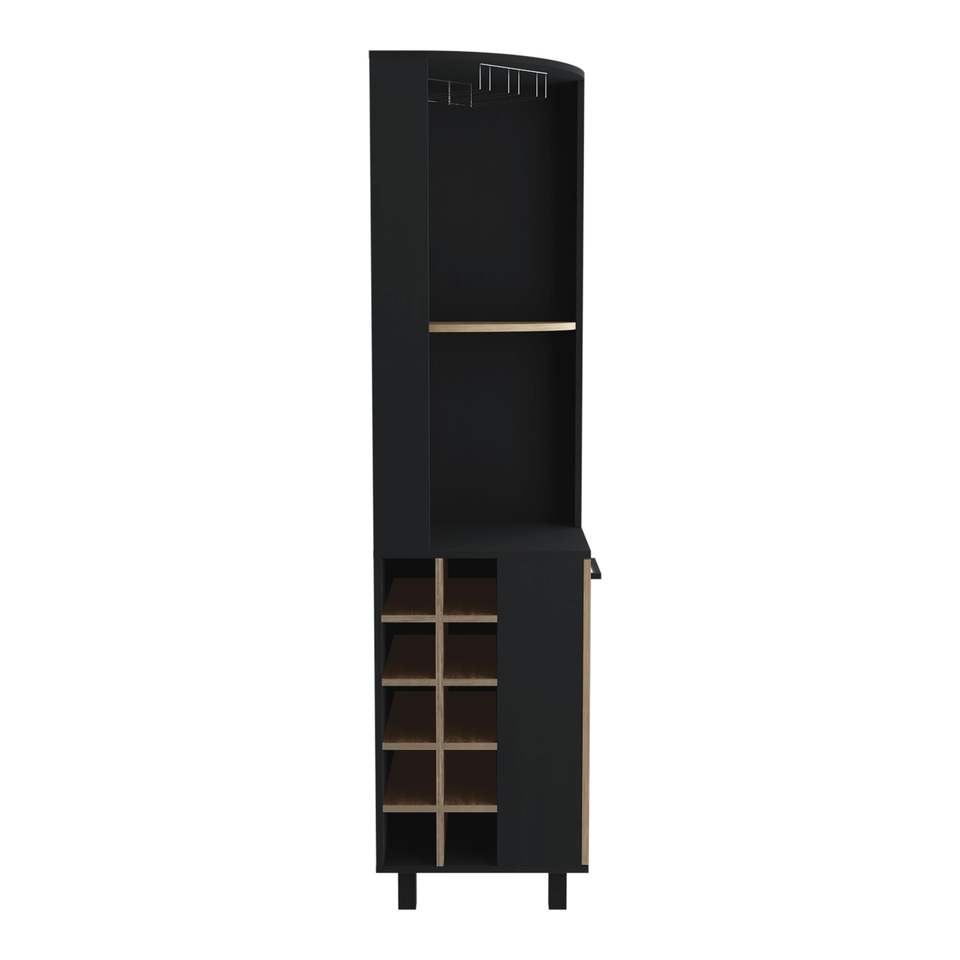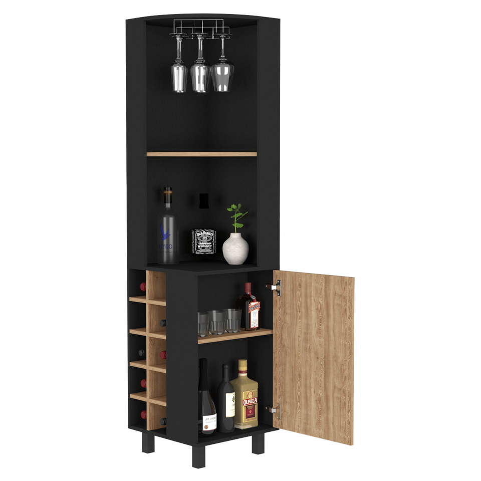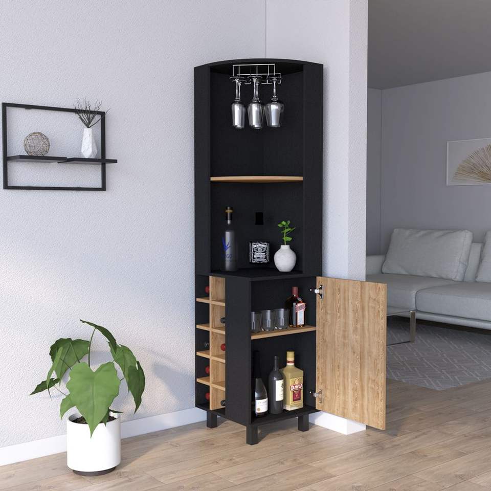 Mobile Bar Angolare Cleveland per Soggiorno, Colore Nero/Pino