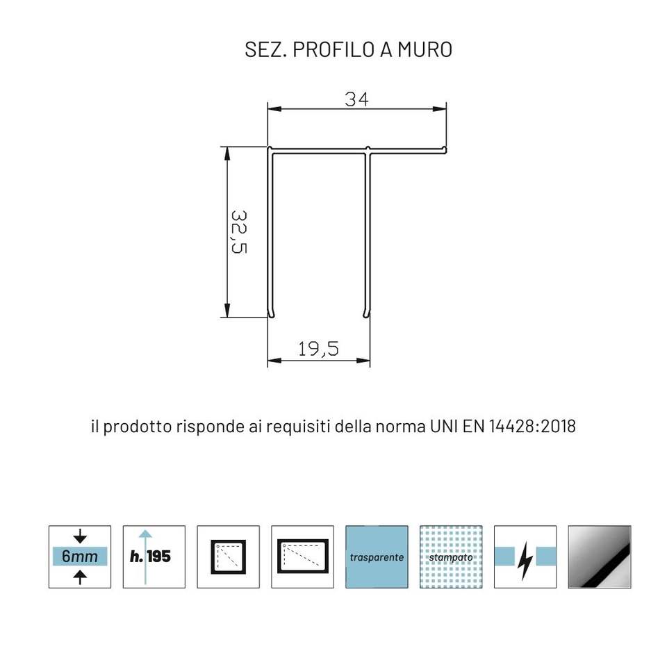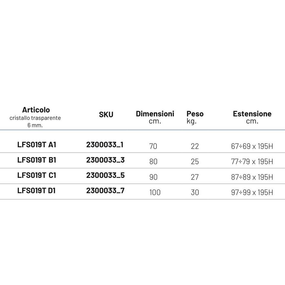 Clivia LFS019T 6 mm Chrome IX Box doccia 70 cm regolabile lato fisso per il tipo di porta a battente