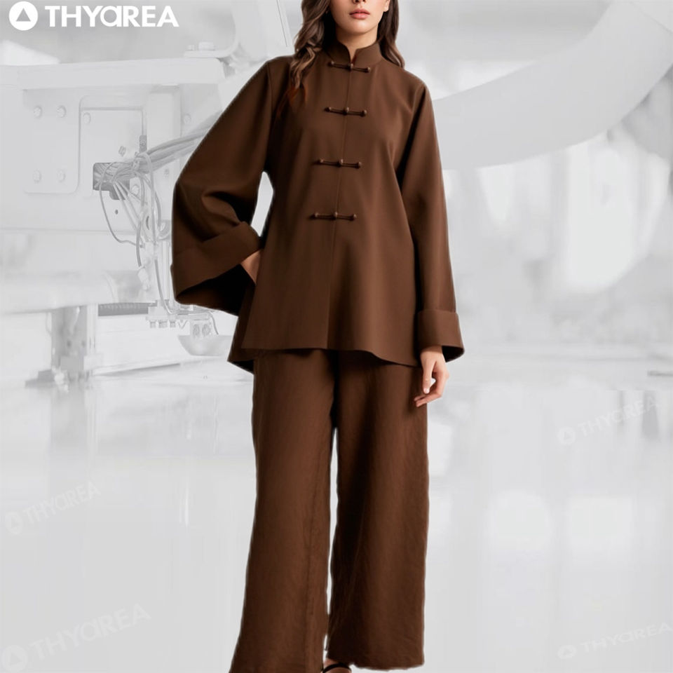 Fabbrica di vestiti in cina all'ingrosso su misura in stile cinese lino due pezzi un Set t Shirt e pantaloni per le donne ODM