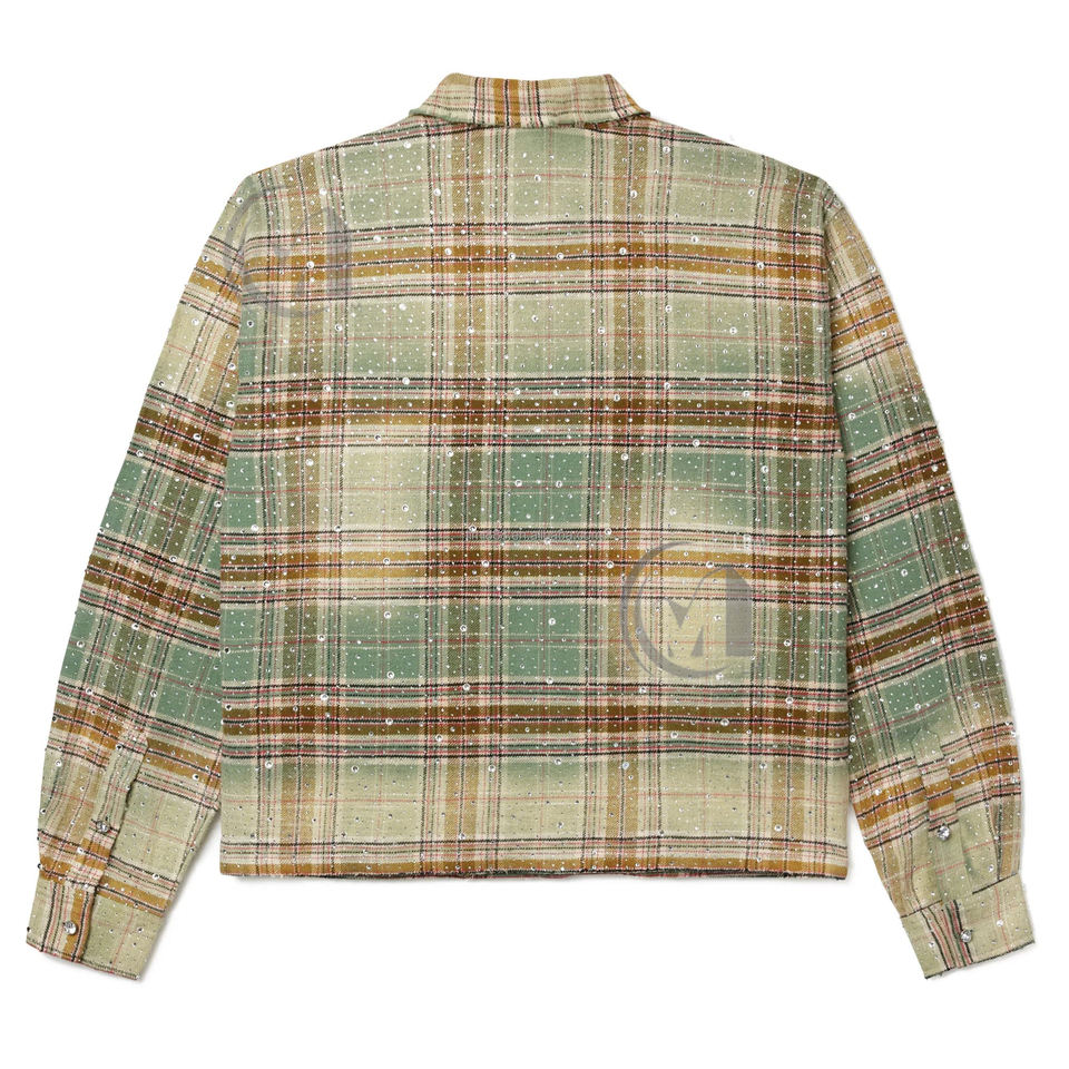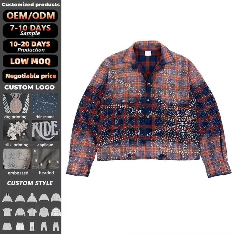 Camicie da uomo a maniche lunghe in flanella a quadri, con strass e perline cucite a mano, lavaggio vintage effetto invecchiato, vestibilità oversize - Collezione di fabbrica