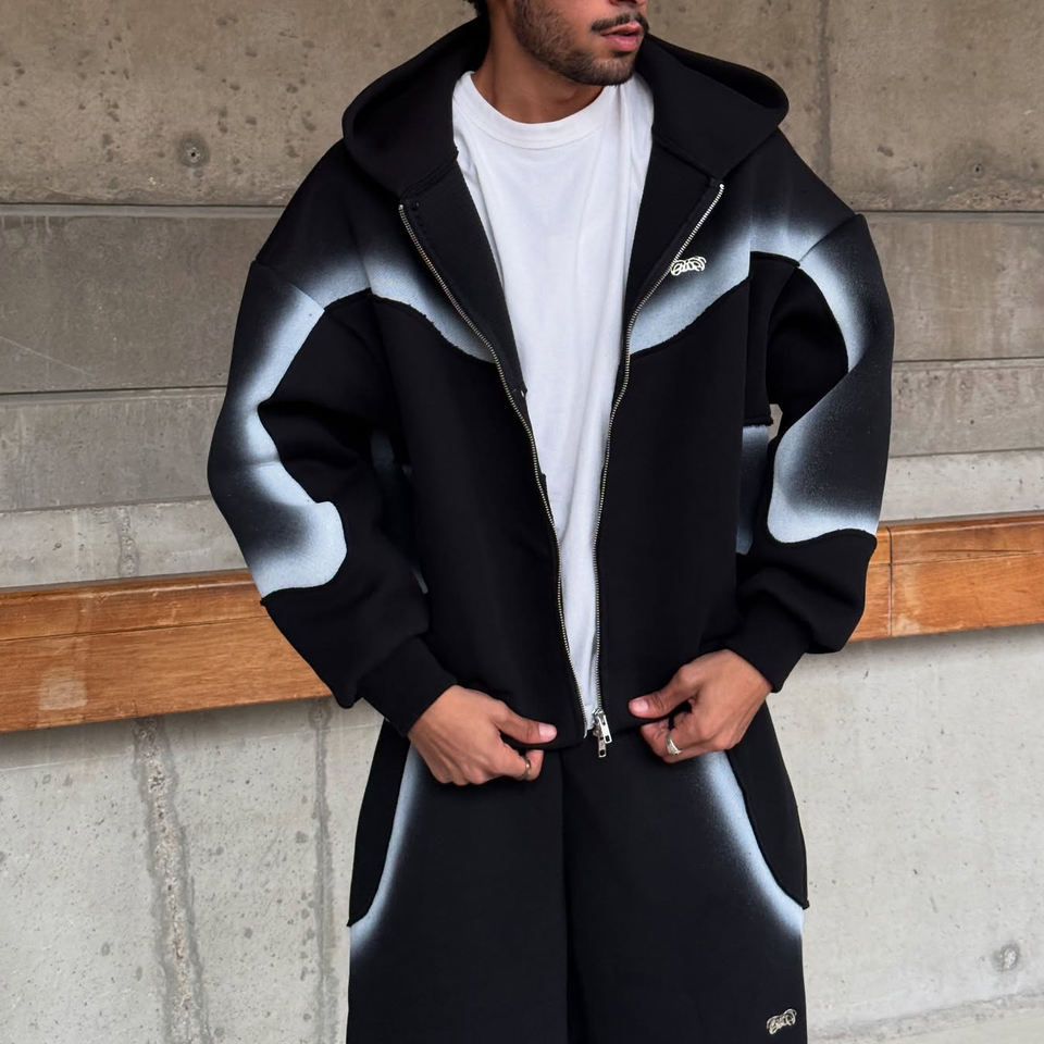 Clothing Manufacturers Custom Acid Wash Cotton Polyester Neoprene Zipper Hoodie and Sweatpants Set Tracksuit Sweat Suits Men