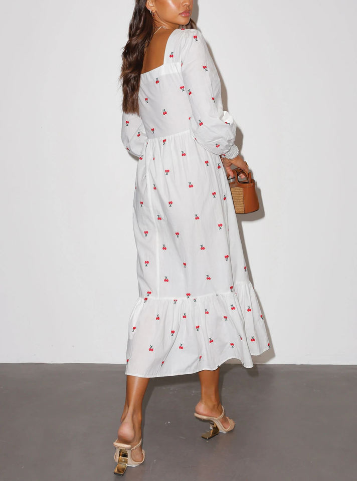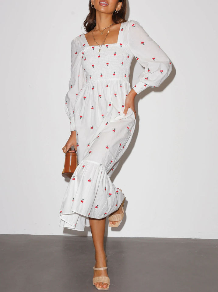 Product name:Cotton Linen White Color Strawberry Embroidery Dresses For Women