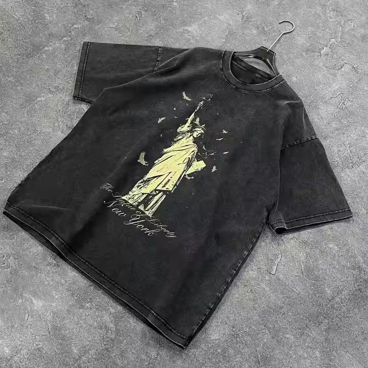 Clothing Manufacturers' Custom Vintage DTG Printed Graphic T-Shirts 100% Cotton Drop Shoulder Casual Short Style Men's Oversized
