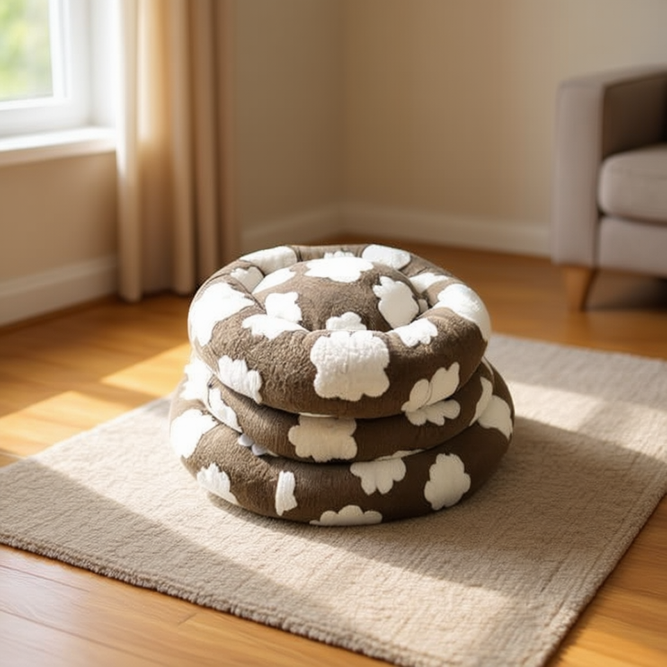 Cloud Jacquard Cotton Velvet Round Nest Three-Piece Set in Brown for Pets Premium Pet Beds