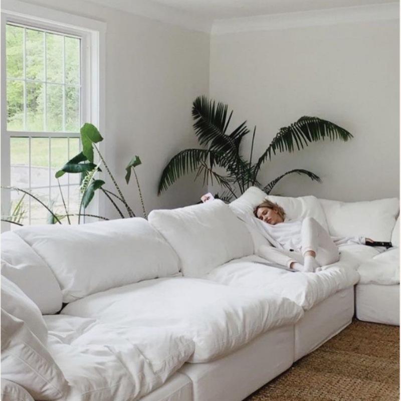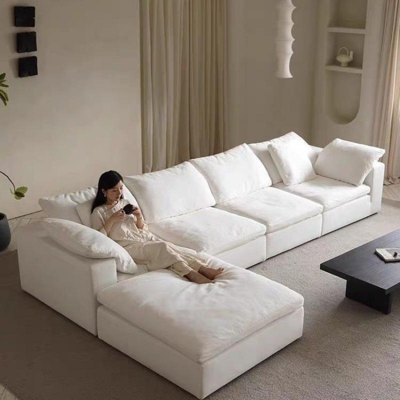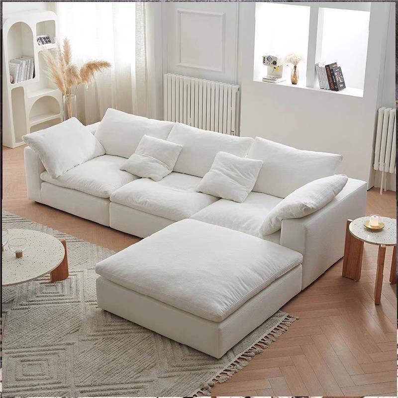 Divano a L Cloud Set in Cotone Lino e Ciniglia, Bianco Crema, Stile Shabby Chic, Rivestimento Rimovibile e Lavabile, Imbottito, per Villa, Appartamento, Hotel