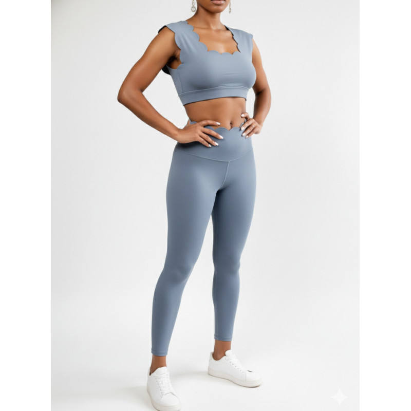 Completo Yoga Cloud Set: Top Corto e Leggings a Vita Alta, Elastico, Senza Cuciture, Tinta Unita, Abbigliamento Sportivo da Donna con Volant per Allenamento, Palestra e Fitness