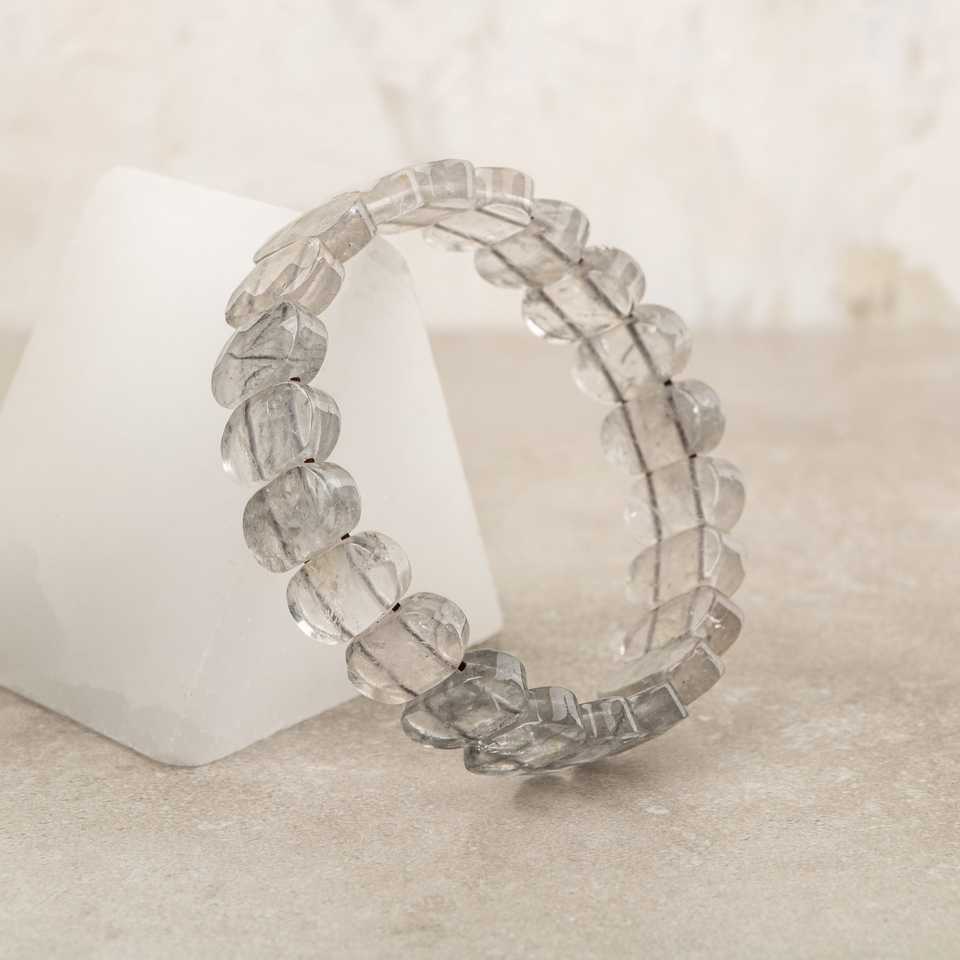 Cloudy Quartz Natural Stone Wide Cut Bracelet