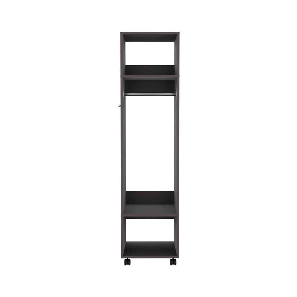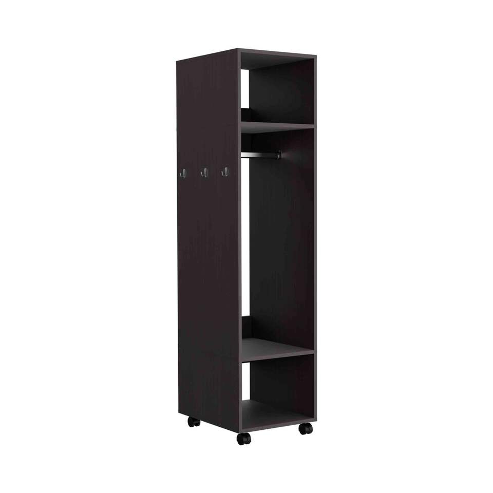 Armadio Alto Cluster 63 con Specchio, Asta Appendiabiti, Tre Ripiani e Ruote, Mobile per Organizzazione e Conservazione Vestiti in Camera da Letto