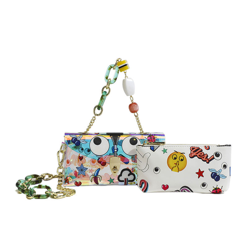 Borse a Tracolla Colorate con Tema Occhio di Gatto e Cinturini con Gioielli, Borsa a Tracolla con Portafoglio Piccolo per Donne # 2336