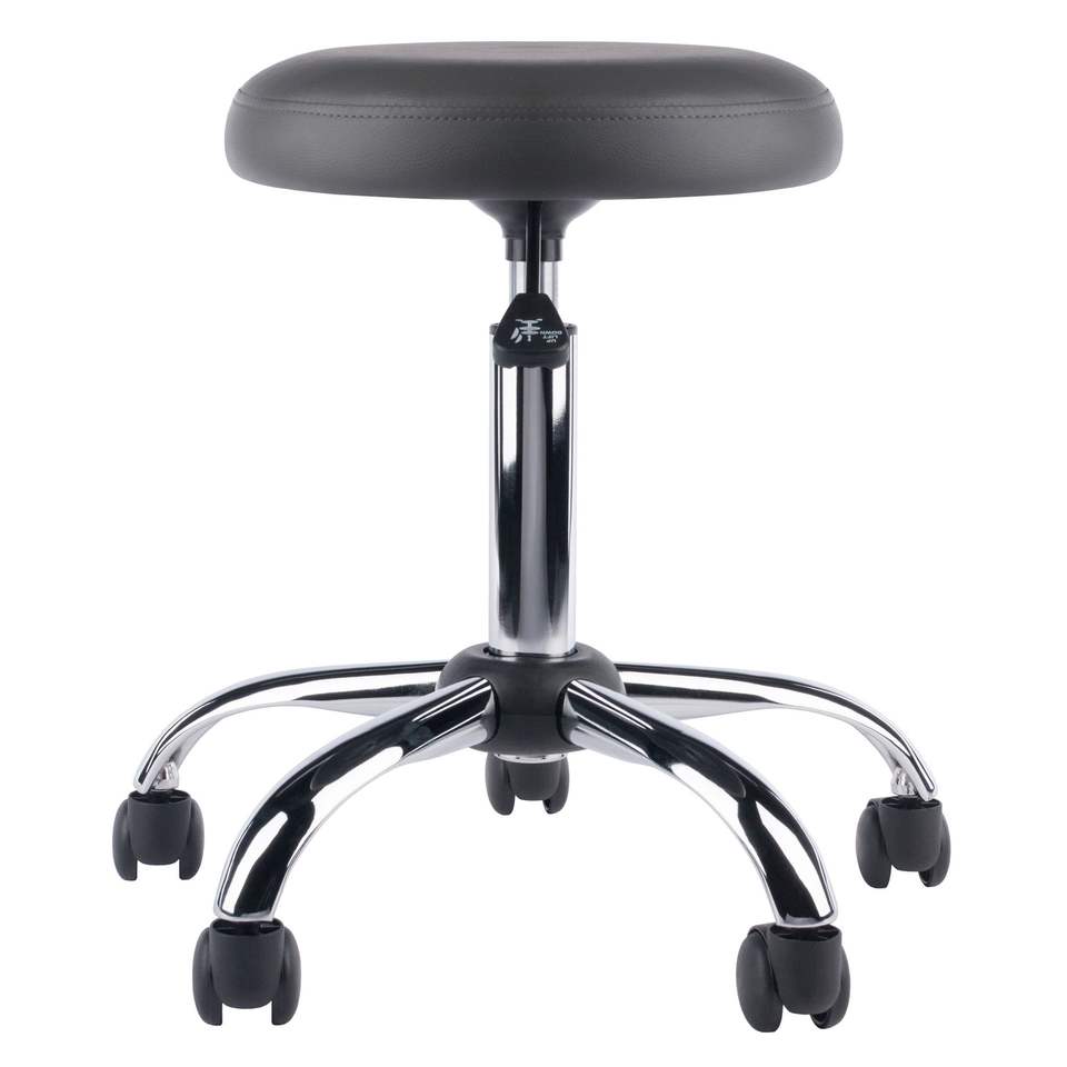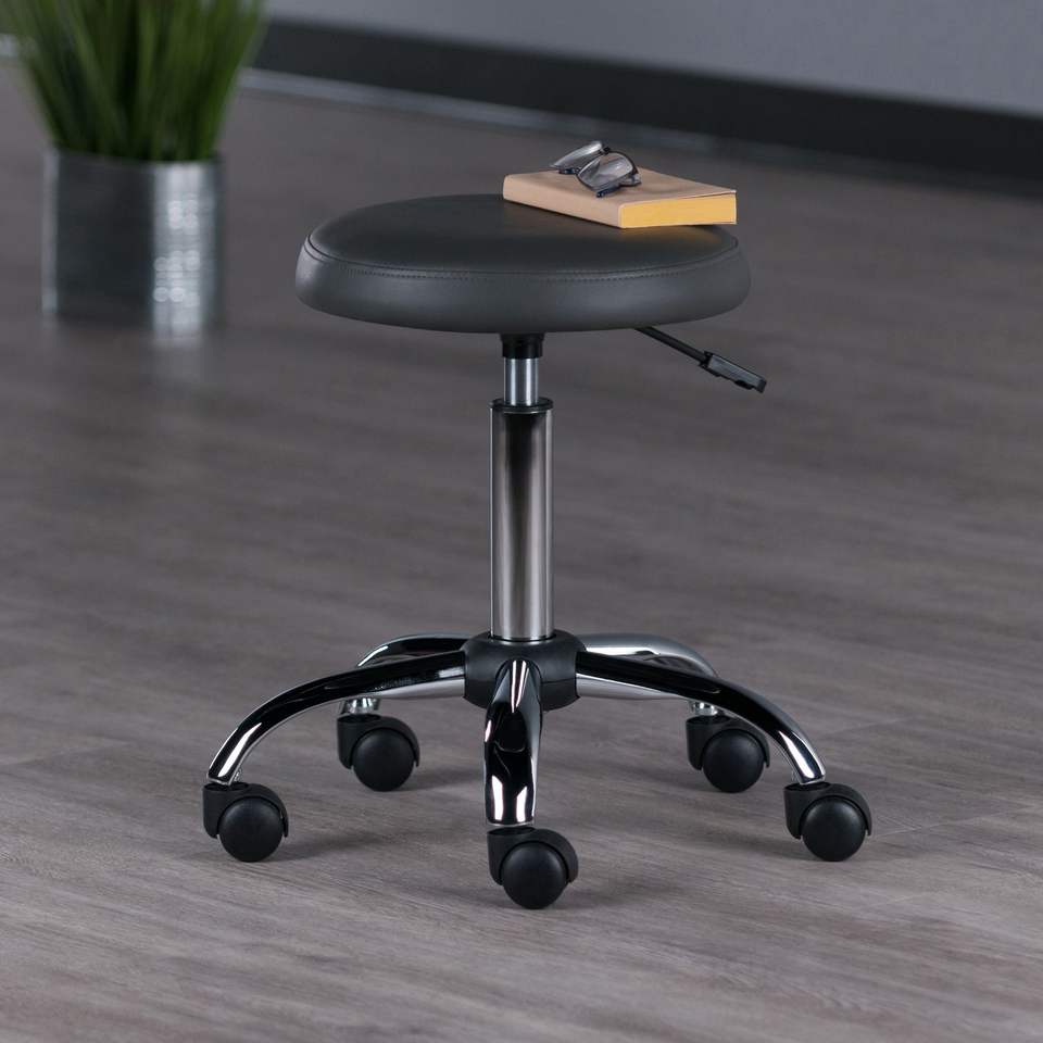 Sgabello girevole Clyde con sedile imbottito regolabile in colore antracite e cromato