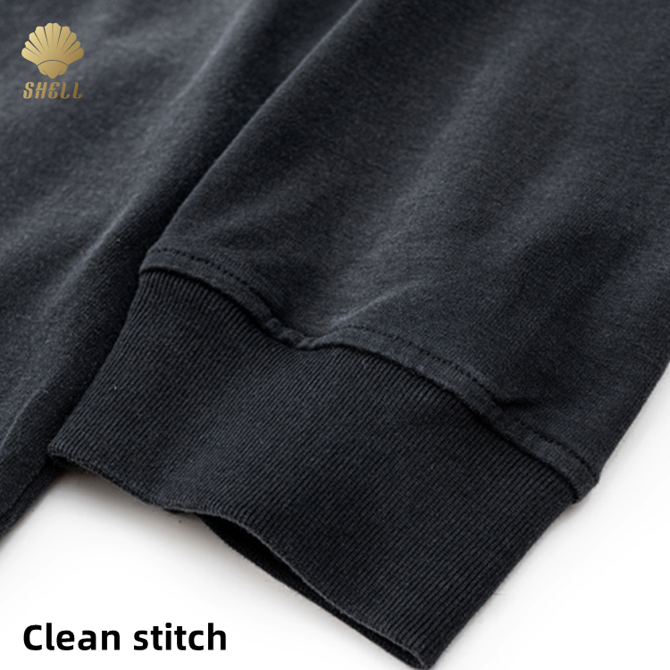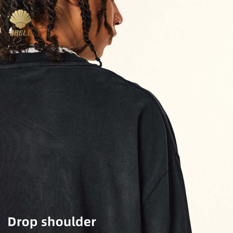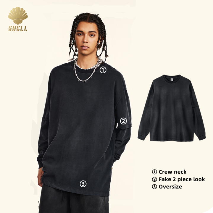 Cnshell 280gsm O-Neck Unisex Long Sleeve Cotton Top Unisex Vintage Acid Monkey Wash Fake Two Piece Look Hiphop 100 Cotton