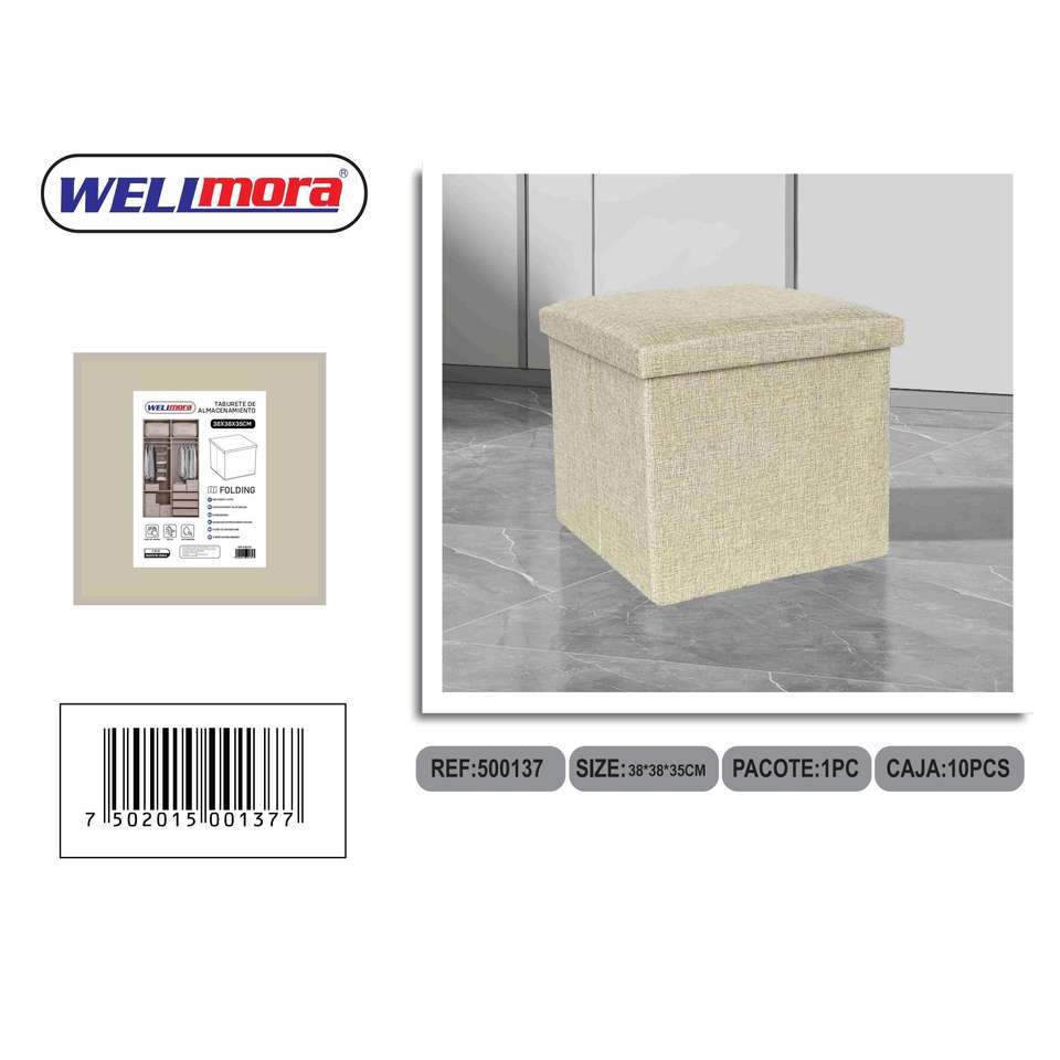 Sgabello portaoggetti WelMora 38x38x35 cm, pieghevole, con coperchio, in tessuto, per l'organizzazione della casa