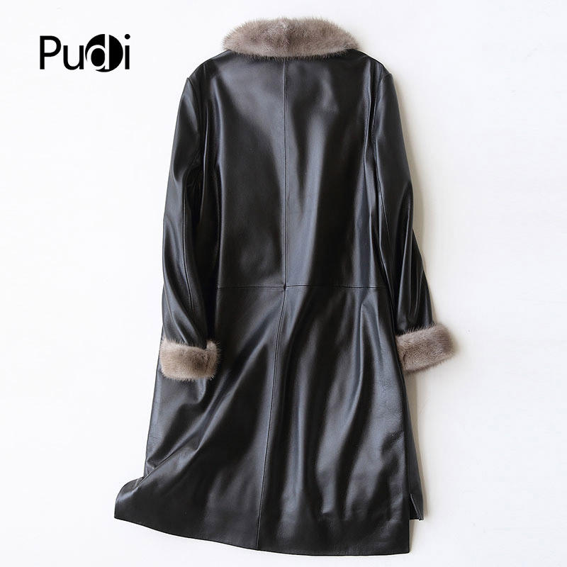 Cappotto Giacca A27953 in Vera Pelle di Pecora e Piumino d'Anatra da Donna Invernale Caldo con Collo in Pelliccia di Visone Pelle Genuina Vintage Trench Sottile a Maglia