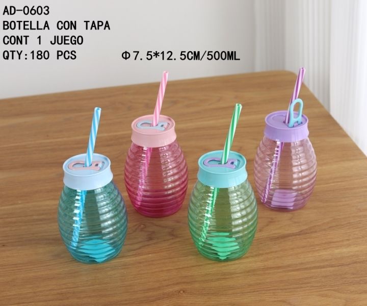 CASAMAX WL AD-0603 Bottiglia in Plastica da 500ml con Coperchi e Cannucce Incluse per Uso Elegante, Durevole e Creativo, Prodotta in Cina