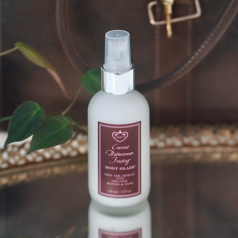 Coconut Buttercream Frosting Body Shimmer Dry Oil Spray 4 oz Frosted Glass Bottle Cruelty-Free Made USA for Enhancing Skin Glow