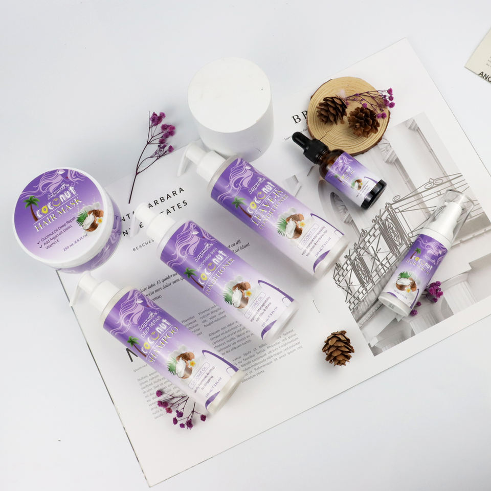 Olio di cocco Set per la cura dei capelli Private Label Shampoo e balsamo maschera per capelli siero olio