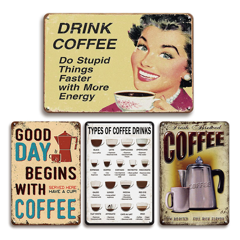 Targa in Metallo Regalo per Amanti del Caffè, Decorazione Cappuccino Americano Latte per Cucina Ufficio Caffetteria
