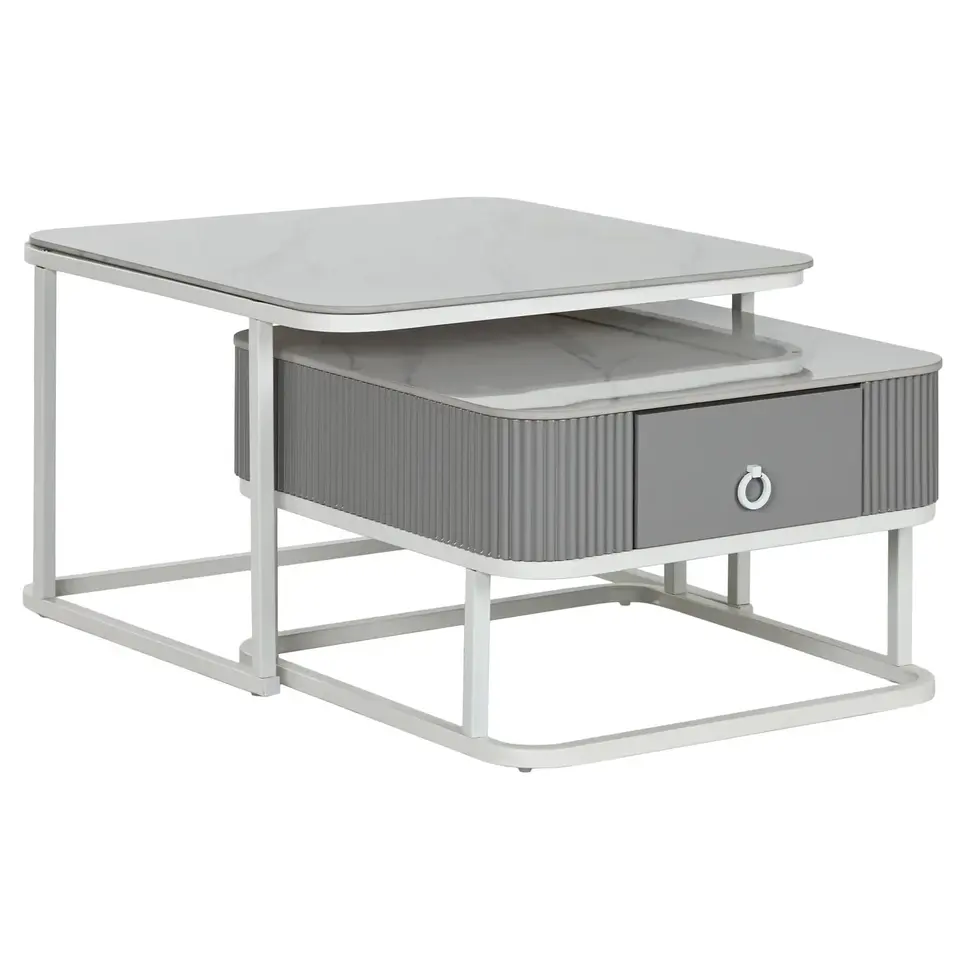 Set di 2 tavolini da caffè in pietra sinterizzata 70x70x45