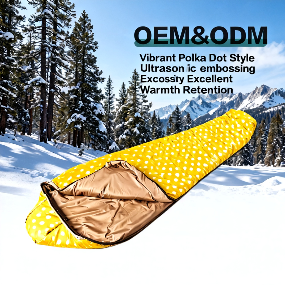 Sacco a Pelo Personalizzato per Climi Freddi, Giallo con Puntini Bianchi, in Poliestere, per Adulti, Escursionismo e Attività all'Aperto
