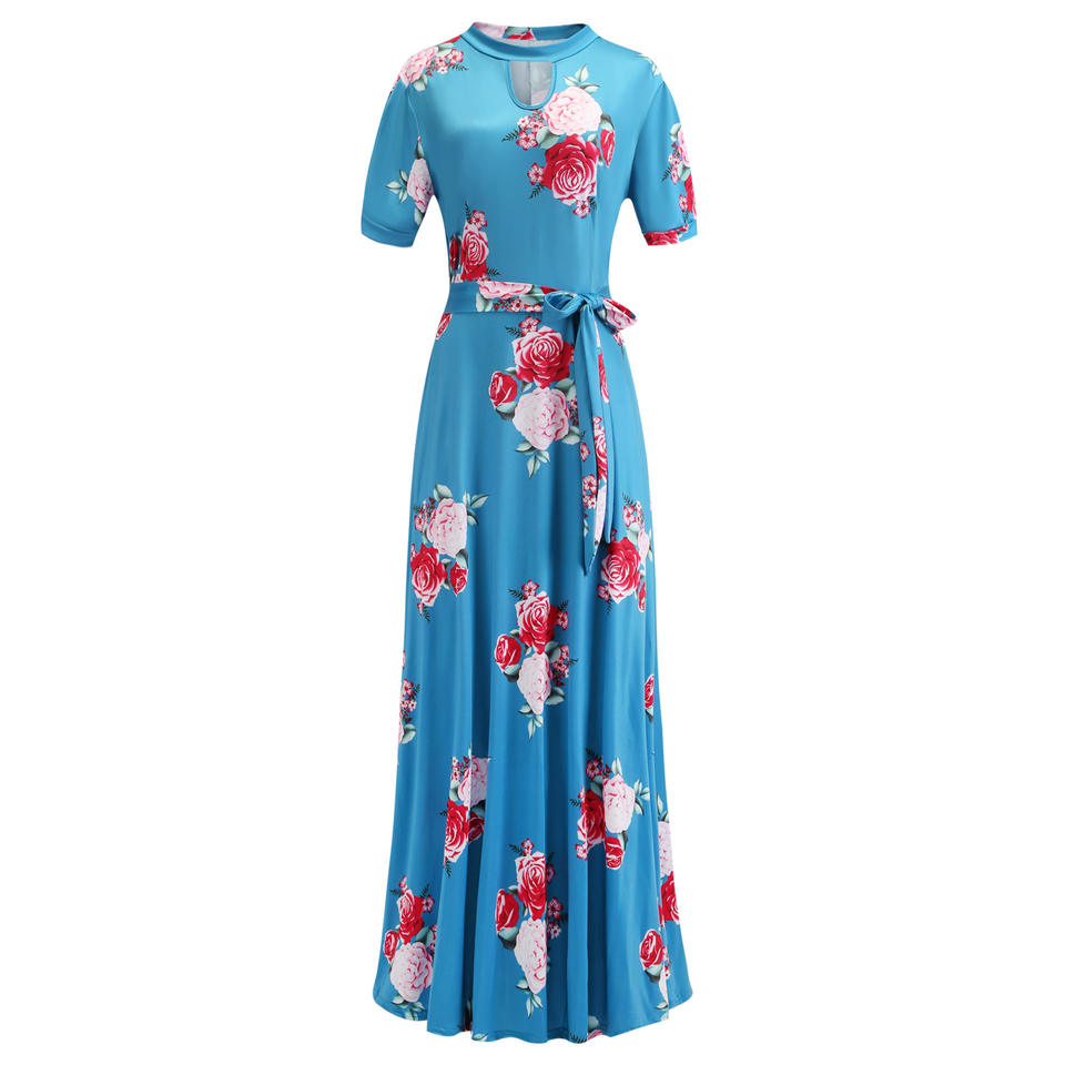 Coldker S-5XL stile europeo abiti Casual da donna stampa floreale Patchwork motivo a righe a trapezio stile impero corto