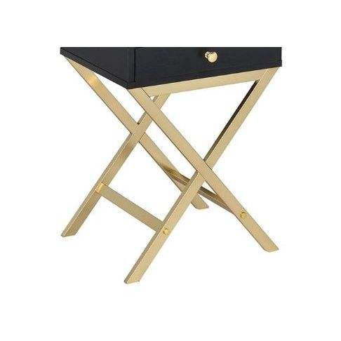 Tavolino da caffè Coleen nero e ottone con finitura accentuata