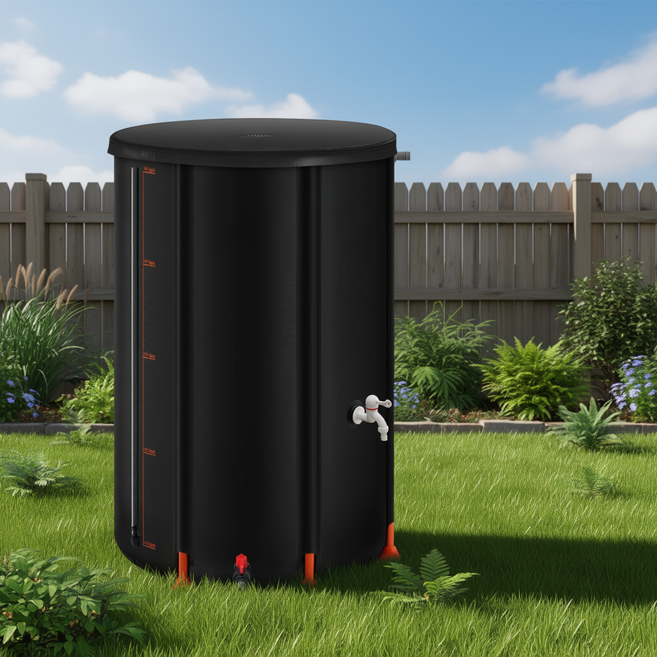 Serbatoio Pieghevole da 100 Galloni in PVC Nero per Raccolta Acqua Piovana con Rubinetto, Cisterna per Stoccaggio Acqua da Giardino