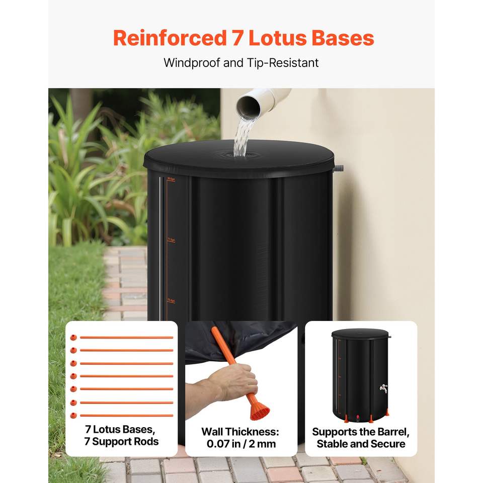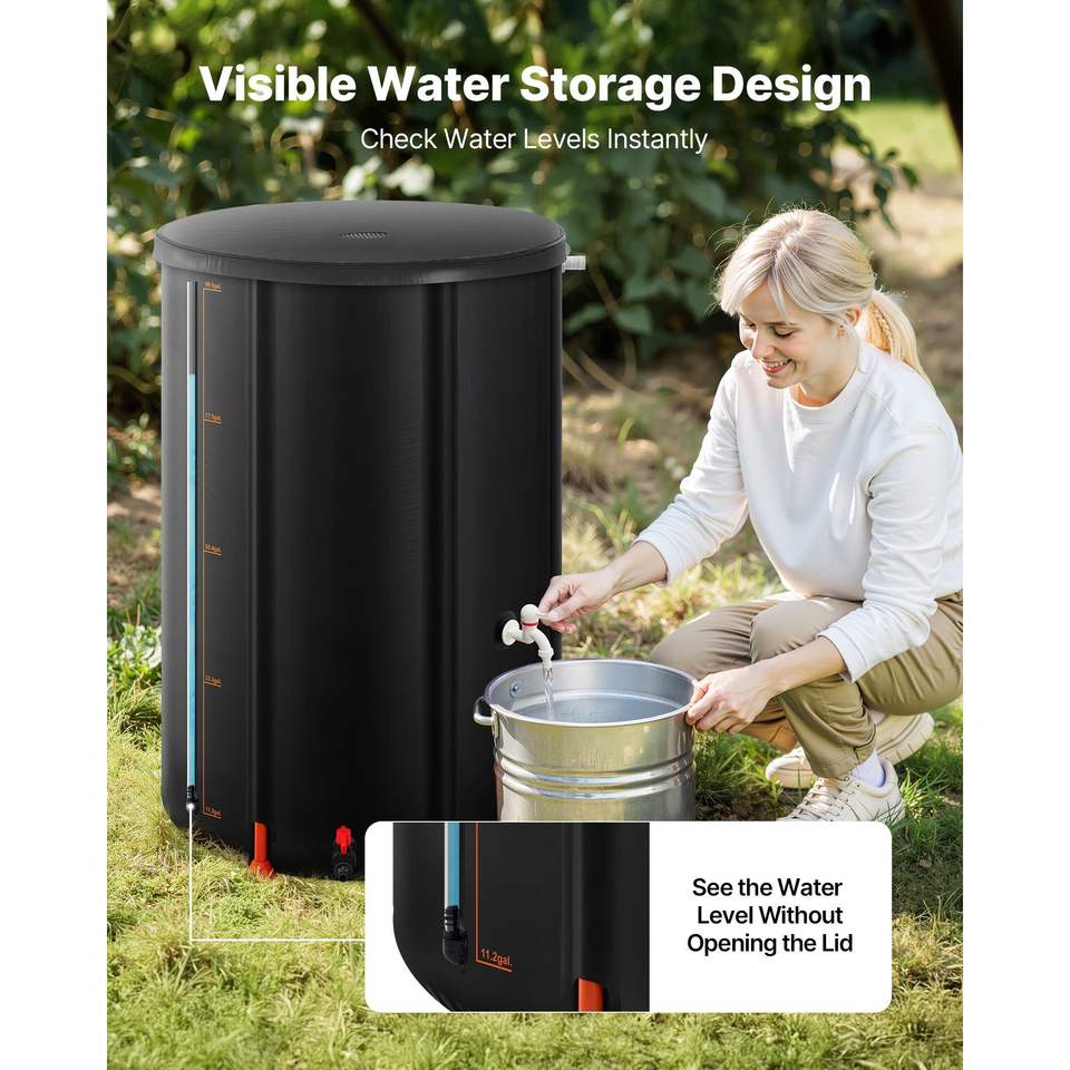 Collapsible 100-Gallon Portable Rain Barrel 1000D PVC Garden Water Collection System Rainwater Storage Cans for Outdoor Use