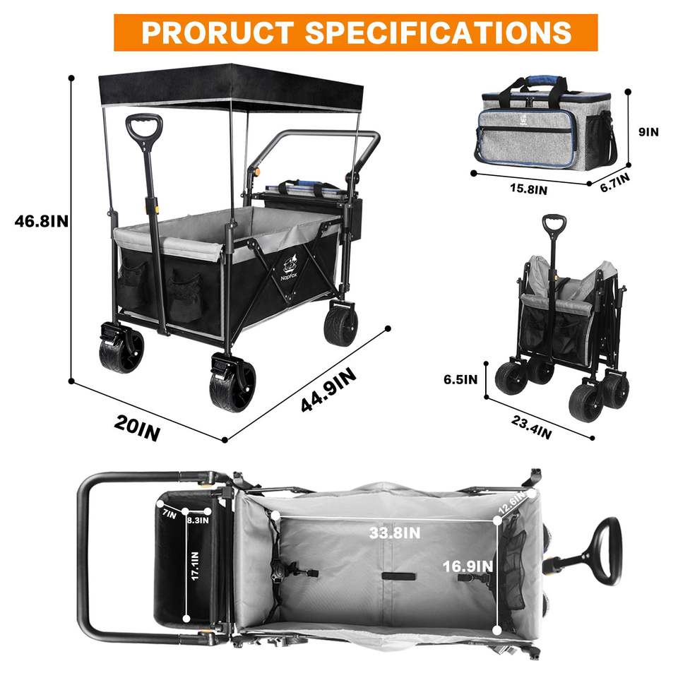 Collapsible 140L All-Terrain Foldable Wagon Cart Brake Removable Canopy Foldable Wagon Cooler Bag for Camping Beach Shopping