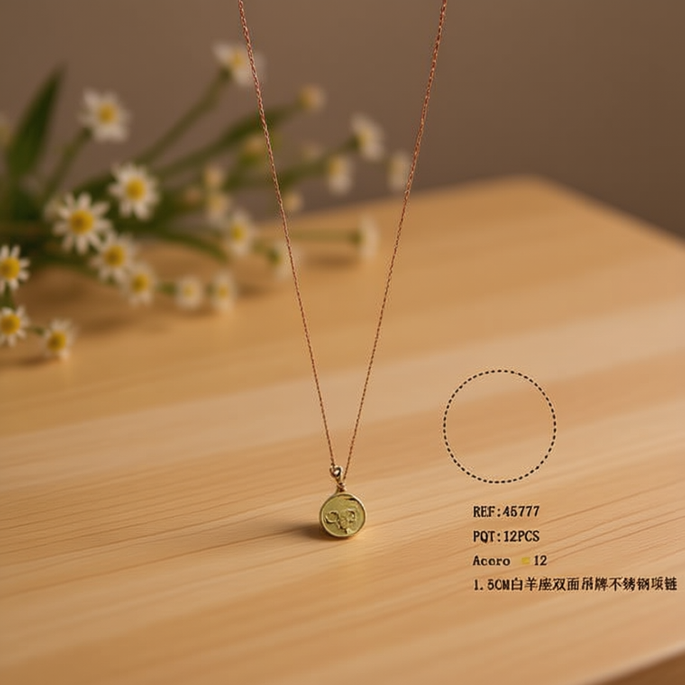 Collana da donna in acciaio inossidabile con ciondolo a doppia faccia Ariete, larghezza 1,5 cm