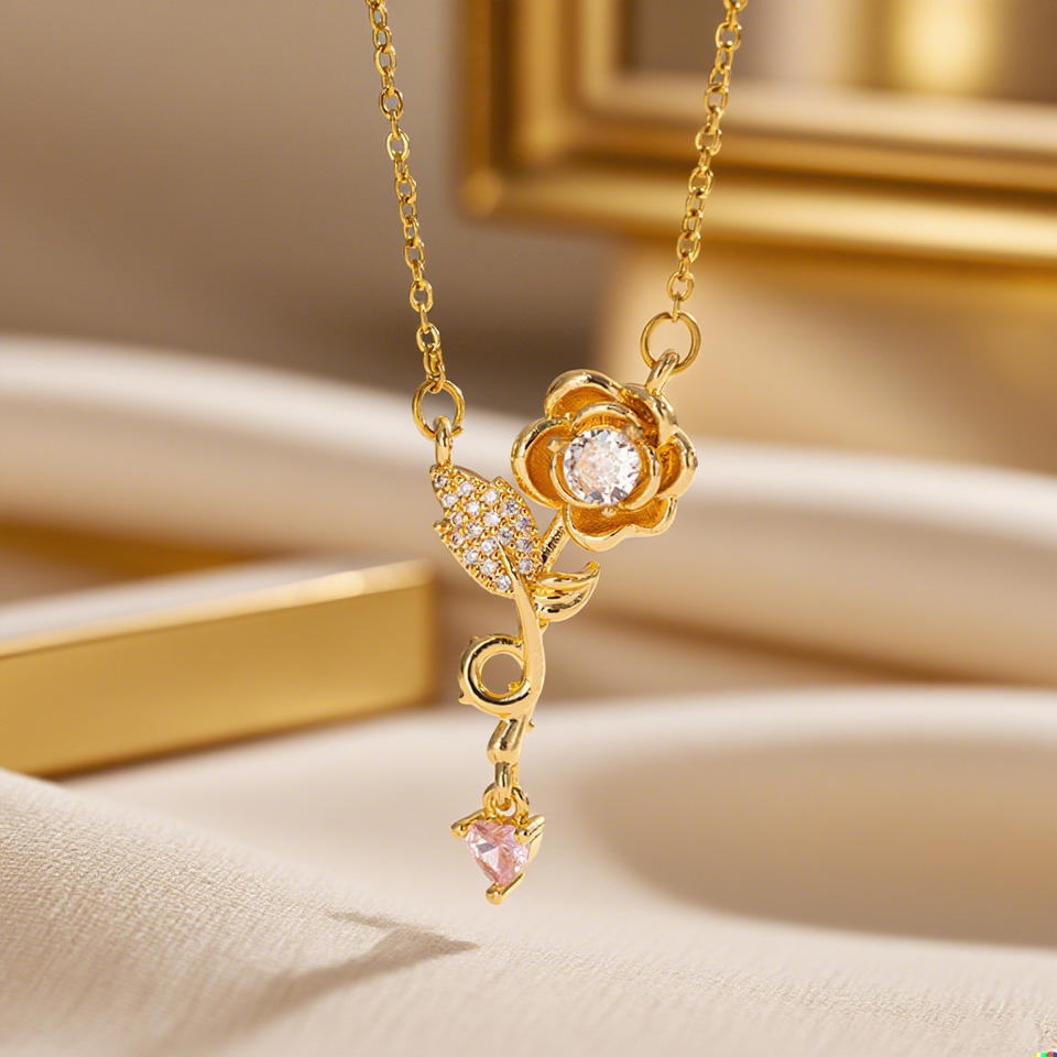 Collare De Acero inossidabile elegante fiore rosa collana in acciaio inox per le donne in acciaio inox catena clavicola gioielli