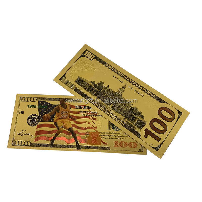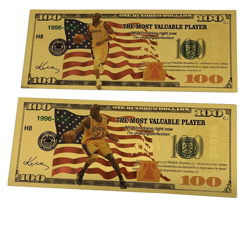 Banconota Commemorativa Kobe Bryant da $100, Denaro da Partita di Basket, Valuta in Foglia d'Oro, Banconote da Cento Dollari