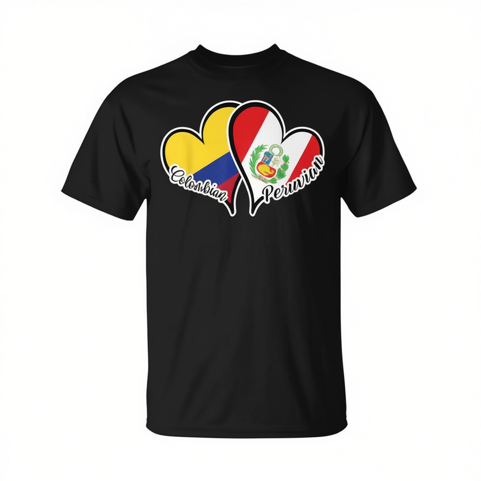 T-Shirt Unisex Promozionale con Design a Cuore della Bandiera Colombiana/Peruviana, Stampa Serigrafica, Collo Tondo, Manica Corta