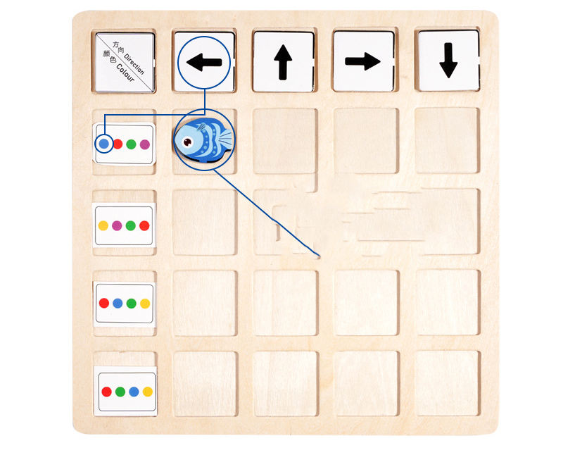 Gioco di Puzzle con Abbinamento di Colori e Direzioni, Divertente Pesce che Trova la Direzione, Puzzle in Legno, Giocattoli da Costruzione