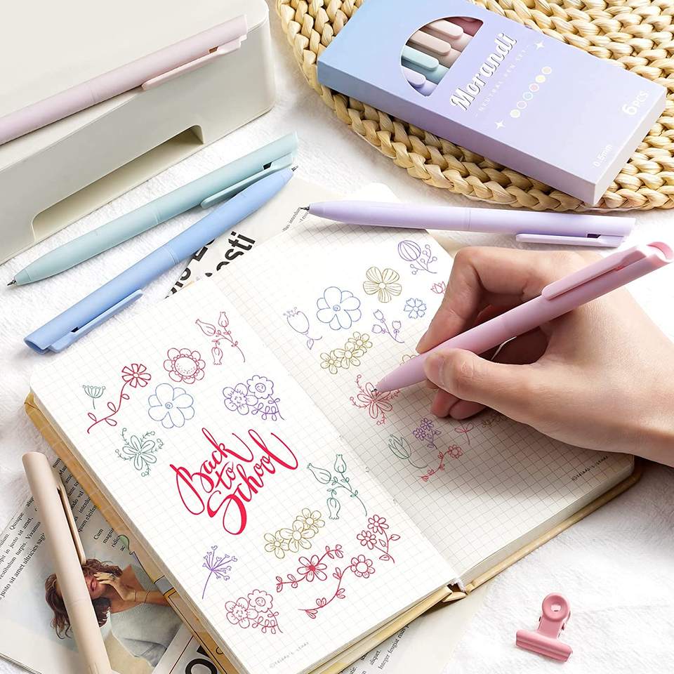 Penne Gel Colorate 6 Colori Inchiostro a Rapida Asciugatura Penna Retrattile Carina Punta Fine 0,5 Mm Penna Gel a Inchiostro Scrittura Fluida Cancelleria