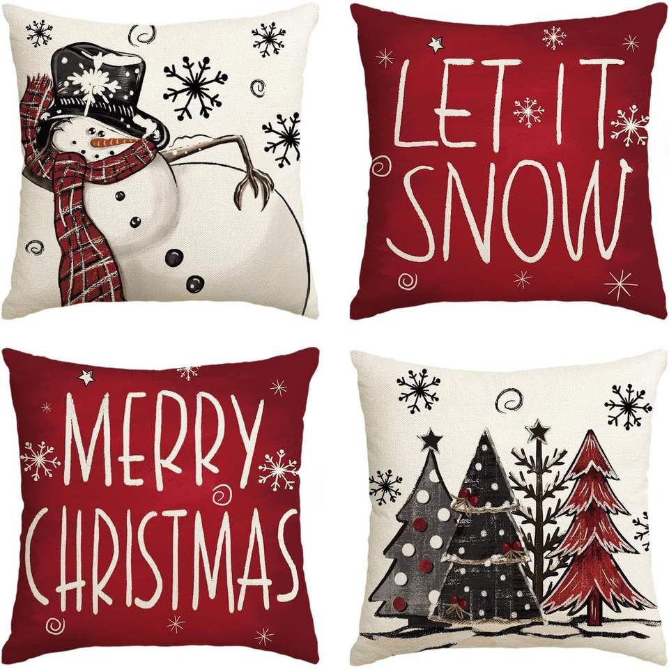 ColorLife Fodere per cuscini natalizi da 18 x 18 pollici con pupazzo di neve 'Let IT Snow', decorazione per cuscini natalizi con albero di Natale e festività invernali