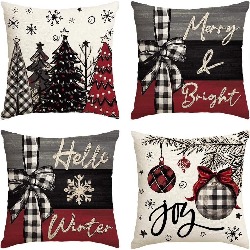 ColorLife Fodere per Cuscini Decorativi 45x45 cm con Alberi di Natale e Scritta 'Merry Christmas', Decorazioni Natalizie